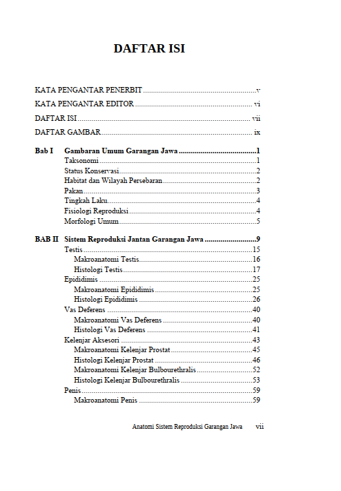 Dengan penguraian yang informatif dan disertai ilustrasi, buku ini diharapkan dapat menjadi sumber pengetahuan bagi siapa saja yang tertarik mempelajari anatomi dan proses reproduksi satwa liar, khususnya garangan Jawa. Melalui pemahaman ini, pembaca diharapkan lebih peduli terhadap upaya pelestarian spesies ini, sehingga keberadaannya tetap terjaga di alam liar.
