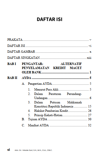 Buku AYDA dalam Praktik Hukum Perbankan ini ditulis berdasarkan pengalaman sehari-hari dari penanganan berbagai kasus di sektor perbankan yang dikemas dengan kalimat sederhana dan mudah dipahami, tanpa menghilangkan makna.