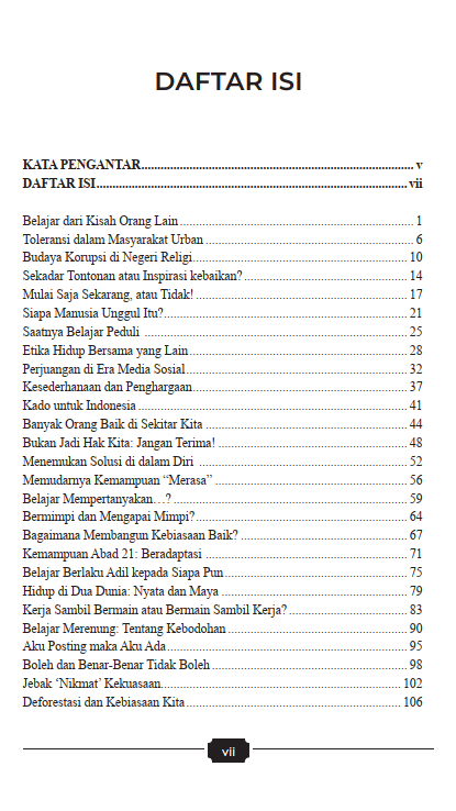 Buku Belajar dari Kehidupan Belajar adalah kebutuhan kita. Terkadang kita perlu memaksakan diri untuk belajar untuk mencapai tujuan hidup. Karena kemalasan sering kali membuat kita pandai merasionalisasikan perasaan malas kita dalam belajar. Memaksakan diri untuk belajar adalah cara yang tepat agar terhindar dari kerugian akibat langkah dan arah yang salah. Belajar merupakan aktivitas tidak mengenal tempat dan waktu, kapan pun dan di mana pun. Melalui buku ini, pembaca akan diajak belajar kembali untuk menghayati kehidupan yang lebih indah dan bermakna. Buku ini berisi tentang berbagai pengalaman belajar yang diambil dari buku, cerita teman, kasus di kantor, hubungan di tempat kerja, kejadian di jalan, di ATM, di rumah, dan masih banyak lagi. Selain itu, buku ini memadukan pengalaman pribadi dan komunitas, diskusi, pemikiran kritis, media sosial, dan peristiwa viral dalam buku.