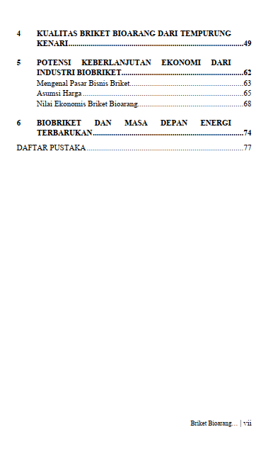 Buku ini mengupas tuntas tentang keunggulan briket bioarang, mulai dari nilai kalor yang tinggi, efisiensi energi, hingga potensi ramah lingkungan melalui pengurangan sampah organik dan emisi karbon. Selain aspek teknis dan kimiawi, buku ini juga menyajikan pandangan dari segi ekonomis dan implementasi dari kelayakan bisnis yang menggarisbawahi potensi komersialisasi briket bioarang.