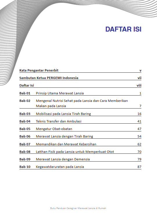 Buku Cinta di Setiap Langkah: Seni Merawat Lansia di Rumahakan membantu Anda dalam memahami proses penuaan dan langkah tepat untuk merawat orang tua. Buku ini juga dilengkapi dengan pemeriksaan sederhana, seperti menilai tingkat kemandirian aktivitas sehari-hari dengan menggunakan indeks ADL (Activity Daily Living) Barthel yang akan menentukan tingkat ketergantungan lansia. Selain itu, ada tips dan trik khusus untuk mengatur nutrisi sehat, cara memberikan makan, mengatur obat-obatan, memandikan dan merawat kebersihan, latihan fisik, hingga mengenali kegawatdaruratan lansia.