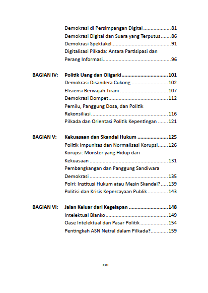 Buku ini mengajak Anda menelusuri fenomena “Demokrasi Zombie” di Indonesia. Sebuah kondisi di mana demokrasi kita bergerak, akan tetapi tanpa jiwa. Berpesta, tetapi hampa. Institusi tetap ada, pemilu digelar, jargon kebebasan berkumandang, namun esensinya terkikis perlahan. Kritik dibungkam, kebebasan sipil menyempit, dan kedaulatan rakyat tereduksi menjadi angka transaksi kekuasaan.