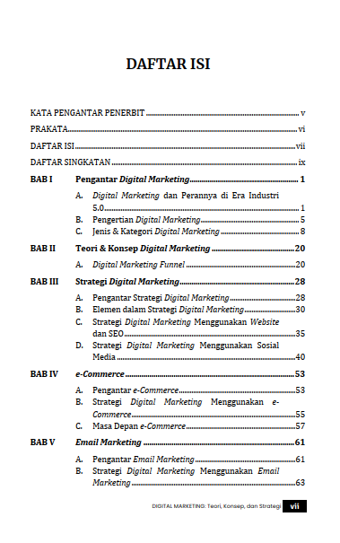E-Book Digital Marketing: Teori, Konsep, dan Strategi ini diterbitkan oleh Penerbit Deepublish Digital