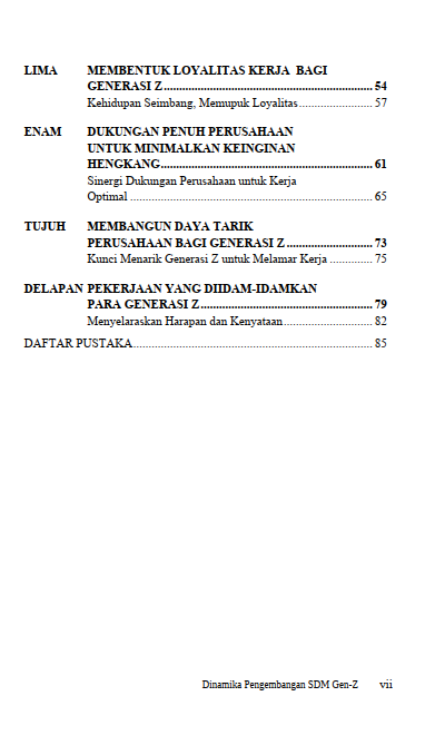 Generasi Z, lahir pada era digital dan penuh dinamika, membawa angin segar sekaligus tantangan baru terhadap dunia kerja. Mereka yang melek teknologi dan berpikiran kritis memilih pekerjaan bukan hanya soal gaji, tetapi juga makna, fleksibilitas, dan reputasi perusahaan. Minat melamar kerja Generasi Z sebagaimana di dalam buku ini tak lepas dari pengaruh employer branding yang autentik, proses e-recruitment yang efisien, serta peluang pengembangan diri. Mereka menghindari konflik, mencari kenyamanan, dan mudah “pindah haluan” jika lingkungan kerja tak sesuai ekspektasi.