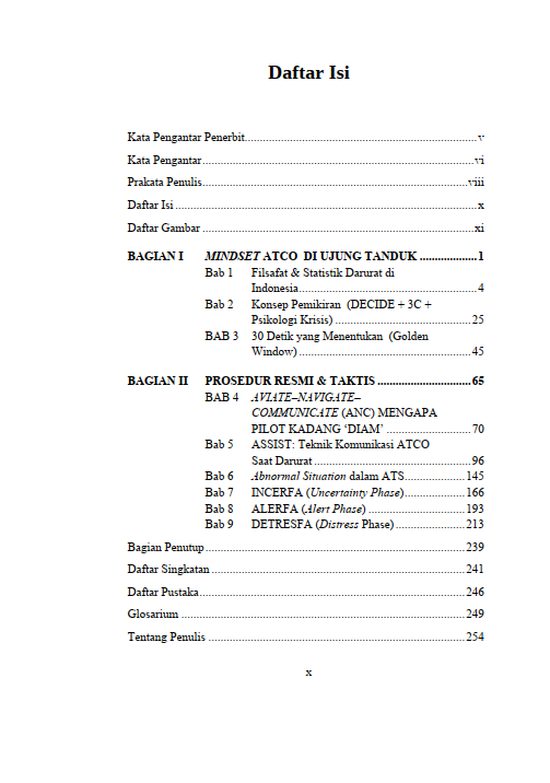Setiap bab disusun dengan bahasa operasional yang mudah dipahami, namun tetap berlandaskan standar ICAO dan praktik ATS internasional. Buku ini tidak hanya menjelaskan apa yang harus dilakukan ATCO, tetapi juga mengapa langkah tersebut penting, bagaimana berpikir di tengah tekanan, dan apa yang terjadi di cockpit pada berbagai fase kedaruratan.