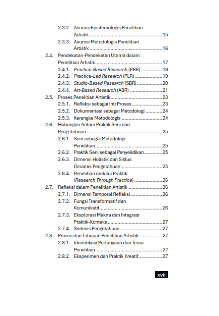 Dunia seni sesungguhnya menyimpan potensi besar sebagai sarana penggalian ilmu pengetahuan yang mendalam, melampaui sekadar penciptaan objek estetis semata. Buku ini menjelaskan bagaimana aktivitas kreatif di dalam studio maupun di ruang publik bertransformasi menjadi sebuah metode pencarian kebenaran yang valid. Berbagai jalan ditempuh untuk memahami bagaimana praktik seni berjalan beriringan dengan teori, mulai dari eksperimen material hingga eksplorasi gagasan yang lahir langsung dari tangan para pencipta. Pemahaman mengenai hubungan dinamis antara tindakan artistik dan pembentukan wawasan baru diuraikan secara komprehensif, membuka mata pembaca bahwa setiap goresan kuas atau gerak tubuh seniman sejatinya adalah bentuk penyelidikan intelektual yang serius.