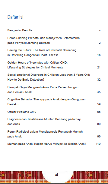 Membentuk Generasi Emas Indonesia membutuhkan pendekatan yang menyeluruh. Buku Holistic Approaches to Nurturing Indonesia’s Golden Generation adalah panduan esensial yang mengupas tuntas berbagai aspek krusial dari fase prenatal hingga tumbuh kembang balita. Anda akan dibekali wawasan mendalam mengenai pentingnya skrining prenatal dan manajemen fetomaternal pada penyakit jantung bawaan, strategi penyelamatan nyawa di momen kritis, serta deteksi dini gangguan sosial-emosional. Pelajari juga dampak gaya mengasuh, terapi perilaku, hingga diagnosis dan tata laksana masalah kesehatan umum seperti muntah berulang dan Ocular Pediatric CMV.