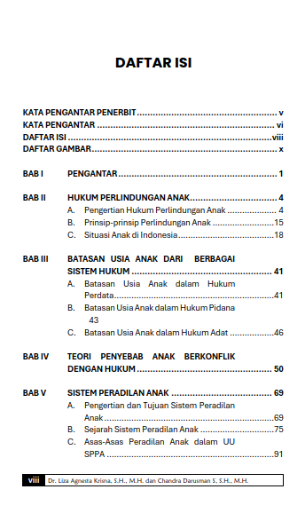 Buku berjudul Hukum Perlindungan Anak: Suatu Tinjauan Yuridis dan Sosiologis terdiri dari beberapa bab, antara lain Pengantar Hukum Perlindungan Anak, Hukum Perlindungan Anak, Batasan Usia Anak dari Berbagai Sistem Hukum, Penyebab Anak Berkonflik dengan Hukum, Sistem Peradilan Anak, dan Pengaturan Normatif Sanksi Pidana Anak. Buku ini diharapkan dapat menjadi salah satu instrumen yang dapat dijadikan sebagai pengingat bagi kita semua bahwasanya anak merupakan subjek yang harus dilindungi, dirawat, dipenuhi hak-haknya dan diberikan peluang untuk tumbuh dan berkembang dengan baik sesuai dengan asas kepentingan terbaik bagi anak; baik oleh orang tua, masyarakat, dan oleh negara.