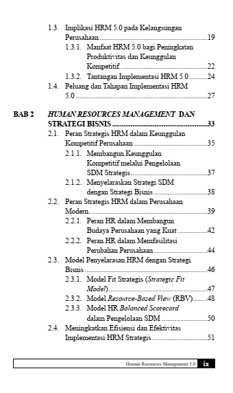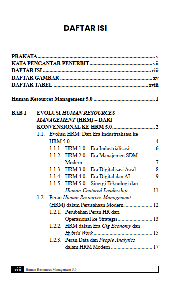 Buku ini menghadirkan bacaan lengkap tentang HRM 5.0, yang memadukan inovasi teknologi mutakhir seperti Artificial Intelligence (AI), People Analytics, hingga konsep inovatif seperti Softbrain Engineer, dengan pendekatan humanistik dan adaptif terhadap kebutuhan karyawan dan perusahaan. Melalui pemaparan mendalam dengan bahasa ringan dan dilengkapi contoh kasus aktual dari perusahaan-perusahaan global, buku ini menjadi referensi yang tepat bagi para praktisi HR, akademisi, mahasiswa, serta profesional bisnis yang ingin memahami bagaimana mengelola manusia secara efektif di era digital.