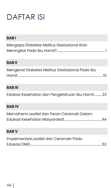 Buku ini hadir sebagai sahabat sekaligus solusi atas masalah tersebut. Dengan menghadirkan pemahaman sederhana namun mendalam tentang DMG. Tidak hanya menjawab pertanyaan dasar tentang apa itu DMG dan mengapa kasusnya kian meningkat, tetapi juga memberikan jawaban konkret tentang bagaimana cara mengedukasi ibu hamil dengan cara yang efektif, sederhana, terukur, serta sesuai dengan kondisi geografis dan sosio-kultural masyarakat Indonesia.