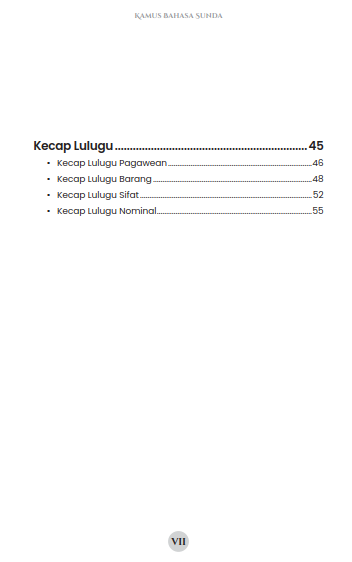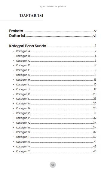 Selami kekayaan budaya dan keindahan bahasa Sunda dengan panduan lengkap! Kamus Bahasa Sunda adalah jendela Anda untuk memahami dan menguasai setiap nuansa bahasa ibu Pasundan. Dirancang secara komprehensif, kamus ini tidak hanya menyajikan ribuan kategori kosakata dari A hingga Y, tetapi juga mengategorikannya berdasarkan jenis kata seperti kecap pagawean (kata kerja), kecap barang (kata benda), kecap sifat (kata sifat), dan kecap nominal. Struktur inovatif ini memudahkan Anda tidak hanya menemukan arti, tetapi juga memahami fungsi dan penggunaannya dalam kalimat.
