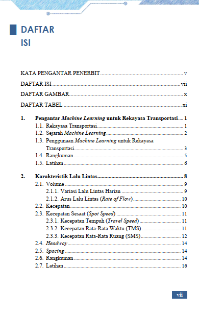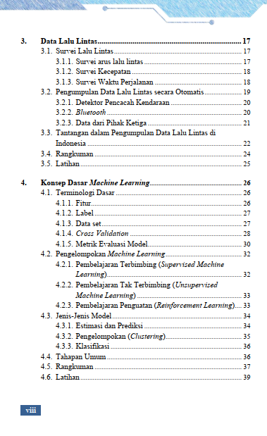Buku ini memperkenalkan cara baru memahami dunia transportasi melalui cara yang lebih modern dan berbasis data. Pembahasan dimulai dari dasar-dasar pergerakan lalu lintas, sumber data yang umum digunakan, hingga cara membaca pola-pola yang muncul di jalan raya setiap hari. Setiap pembahasan membawa Anda lebih dekat pada pemahaman tentang bagaimana sistem cerdas bekerja di balik monitor pusat kendali lalu lintas, aplikasi navigasi, hingga layanan transportasi berbasis daring. Dengan contoh-contoh yang relevan, Anda diajak mengenali bagaimana komputer dapat mempelajari data volume, kecepatan, rute perjalanan, dan kondisi jalan untuk membantu memperkirakan situasi di masa mendatang.