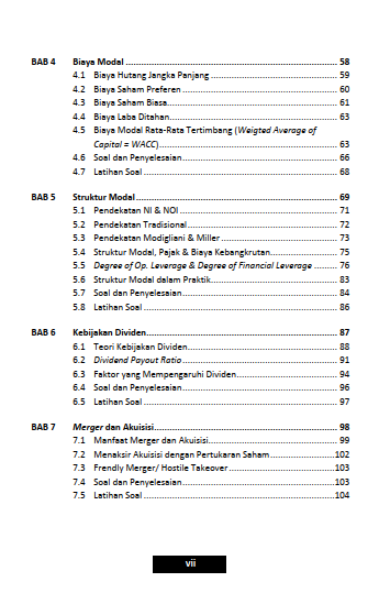 Buku Manajemen Keuangan Lanjutan ini disusun sebagai buku referensi yang komprehensif bagi mahasiswa dan praktisi yang ingin memperdalam pemahaman mereka dalam bidang keuangan perusahaan tingkat lanjut. Tersusun atas delapan bab, dengan cakupan materi mulai dari penganggaran modal, sumber dana jangka menengah, sumber dana jangka panjang, biaya modal, struktur modal, kebijakan dividen, merger dan akuisisi, hingga restrukturisasi, reorganisasi dan likuidasi. Buku ini cocok digunakan sebagai pegangan dalam perkuliahan maupun sebagai panduan praktis dalam pengambilan keputusan keuangan strategis. Selamat membaca!