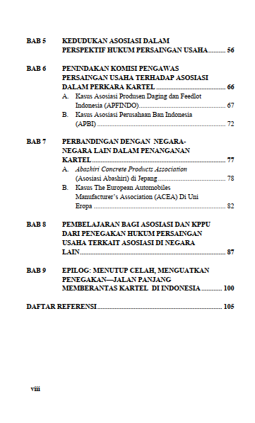 Buku ini menyajikan pelajaran berharga dari Jepang dan Uni Eropa dalam mengatasi kartel, menawarkan referensi bagi asosiasi dan regulator agar dapat menguatkan pengawasan dan menciptakan pasar yang adil dan kompetitif. Sebuah bacaan wajib bagi praktisi hukum, pembuat kebijakan, dan siapa saja yang peduli akan masa depan ekonomi Indonesia tanpa praktik curang.