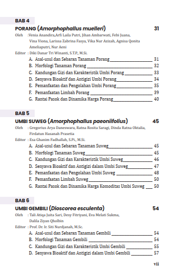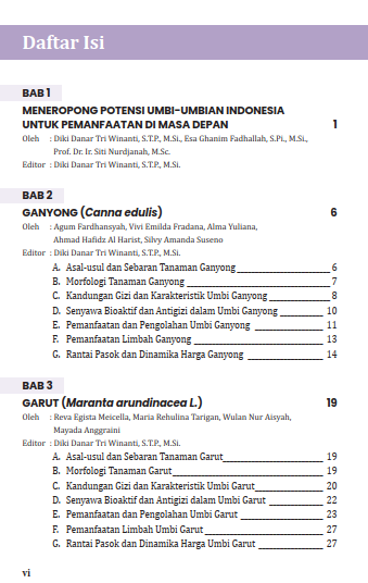 Buku ini ditulis oleh para Gen Z yang kami banggakan, di mana mereka sedang belajar peduli dengan potensi lokal Indonesia khususnya terkait sumber karbohidrat dari umbi-umbian. Era sebelum penjajahan, ketahanan pangan tidak tergantung dengan produktivitas beras padi tetapi tetap lestari dengan umbi-umbian, talas-talasan, jagung, dan sagu. Kini, peradaban pangan Indonesia begitu melekat dengan beras padi sebagai makanan pokok, dan tepung-tepungan impor seperti terigu sebagai makanan pendamping. Nasib umbi-umbian dan talas-talasan tak seberuntung porang yang tiba-tiba melesat menjadi proyek strategis nasional. Padahal, peran umbi-umbian lain sangat besar sebagai ingredients produk pangan, kosmetika, farmasi, hingga kemasan. Pati, senyawa bioaktif hingga senyawa antigizinya dapat dimanfaatkan untuk kemaslahatan melalui teknologi pengolahan pangan. Pemanfaatan umbi-umbian dalam bentuk produk yang familiar di masyarakat dapat mendongkrak kembali produktivitas umbi-umbian lokal untuk kembali mengokohkan ketahanan pangan Indonesia. Pangan lokal belum tentu tertinggal. Pekerjaan rumah kita adalah membawa potensi lokal kepada inovasi untuk kesejahteraan masyarakat di masa depan.