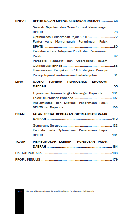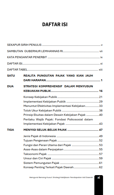 Dari kendala yang ada, pemerintah daerah secara aktif mencari solusi. Inisiatif digitalisasi dilakukan untuk merampingkan operasional juga pembuatan platform daring untuk menyederhanakan pelaporan dan pembayaran pajak. Upaya untuk meningkatkan keterampilan petugas pajak melalui program pelatihan bertujuan untuk meningkatkan kapasitas administratif, sedangkan kampanye edukasi publik berupaya untuk menumbuhkan budaya kepatuhan dengan menyoroti manfaat nyata dari kontribusi pajak bagi kesejahteraan masyarakat. Buku ini menggarisbawahi peran penting pajak daerah dalam mempertahankan fungsi pemerintahan dan mendorong pemerataan pembangunan dengan memberikan pendekatan holistik, mulai dari modernisasi infrastruktur, menyempurnakan regulasi, dan melibatkan masyarakat untuk memastikan keadilan dan keberlanjutan.