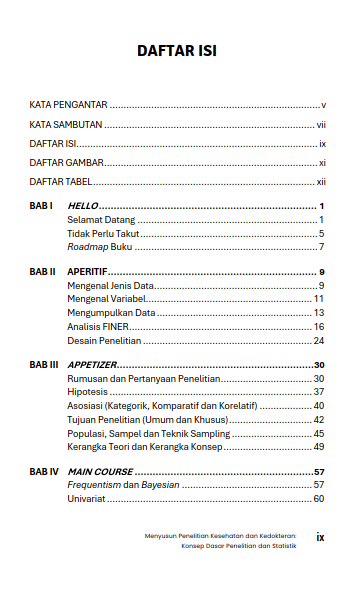 Menyusun Penelitian Kesehatan dan Kedokteran: Konsep Dasar Penelitian dan Statistik adalah pintu gerbang menuju pemahaman statistik yang menyenangkan dan aplikatif untuk mahasiswa kesehatan dan kedokteran. Buku ini dirancang khusus untuk menjawab tantangan yang sering dihadapi dalam penelitian kesehatan kedokteran dari memahami jenis data, rumusan masalah, pertanyaan penelitian, menyusun hipotesis, hingga menguasai eksekusi statistik dan pengambilan keputusan.