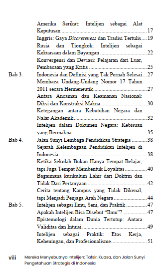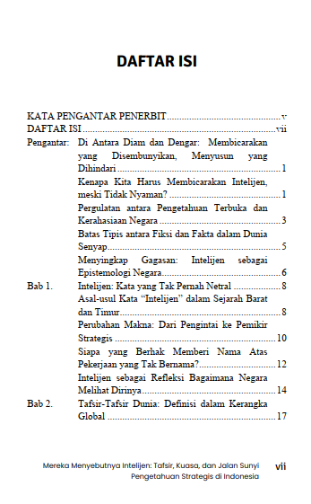 Buku Mereka Menyebutnya Intelijen: Tafsir, Kuasa, dan Jalan Sunyi Pengetahuan Strategis di Indonesia menyoroti pentingnya pembahasan tentang intelijen di Indonesia, yang kerap disalahartikan sebagai entitas rahasia atau alat represi. Buku ini menegaskan bahwa intelijen adalah fungsi kewaspadaan kolektif dan mata ketiga bangsa yang mendeteksi ancaman sekaligus peluang strategis.