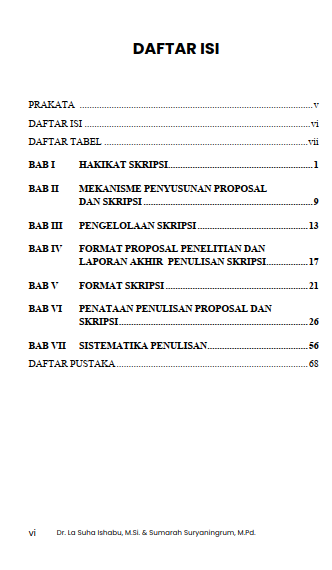 Buku Mudah Menulis Skripsi: Langkah Sistematis Menuju Kelulusan ini ditulis untuk meningkatkan kualitas penulisan skripsi oleh mahasiswa maupun proses pembimbingan skripsi oleh dosen. Oleh karenanya, buku ini ditulis secara terstruktur, sistematis, dan detail yang memuat hakikat skripsi, struktur isi, tata tulis, dan prosedur ujian skripsi. Semoga buku ini dapat bermanfaat bagi segenap pembaca dan menjadi standarisasi teknis dan kerangka skripsi. Selamat membaca!