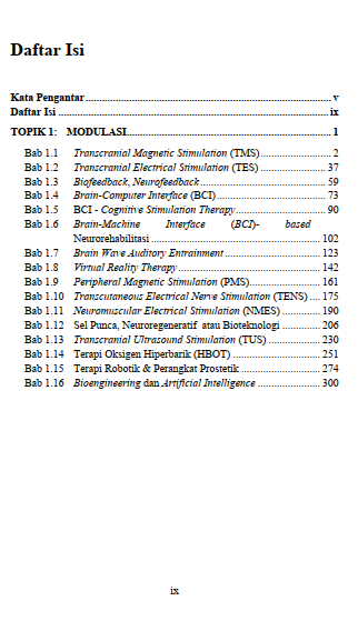 Buku ini mencakup berbagai topik mulai dari konsep dasar neurorestorasi dan neuroteknologi, teknik diagnostik, intervensi terapeutik, hingga eksplorasi teknologi mutakhir seperti stimulasi magnetik, antarmuka otak-komputer, dan terapi berbasis bioteknologi. Penyusunan materi yang beragam ini diharapkan dapat menjadi rujukan komprehensif bagi para neurolog, tenaga medis, peneliti, serta mahasiswa yang ingin memahami pendekatan multidisipliner dalam penatalaksanaan gangguan neurologis.