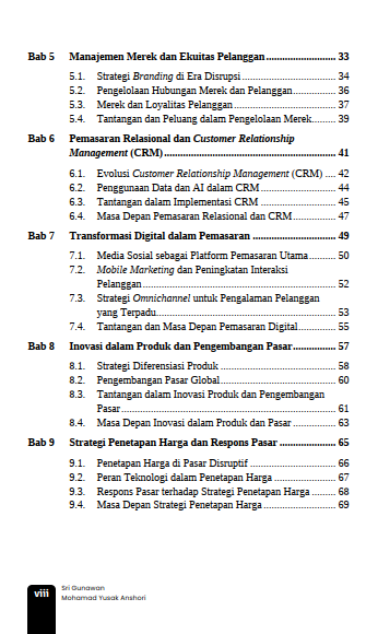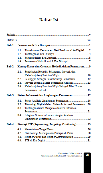 Karya ini sangat cocok untuk akademisi, praktisi bisnis, pengambil kebijakan, maupun mahasiswa yang ingin memahami pemasaran di tengah kompleksitas dunia digital saat ini. Bersiaplah untuk mendapatkan wawasan baru, mengubah paradigma lama, serta menjadi pemimpin yang mampu menghadapi dan menciptakan disrupsi positif di masa depan.