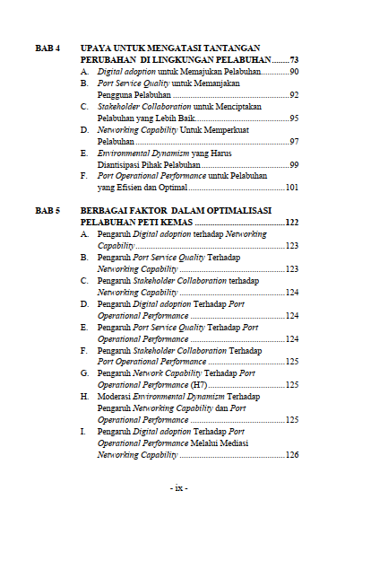 Dengan penyajian yang sistematis, buku ini membantu pembaca memahami bagaimana pelabuhan dapat terus meningkatkan daya saing, berinovasi secara digital, serta berkomitmen pada pembangunan berkelanjutan untuk menghadapi tantangan global masa depan.