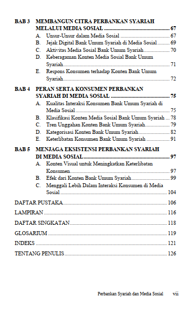 Buku ini membahas strategi konten media sosial yang efektif bagi perbankan syariah di Indonesia. Disajikan secara komprehensif, buku ini menguraikan enam jenis konten utama—orienting, humanizing, interacting, placemaking, showcasing, dan crowdsourcing—yang dapat memperkuat hubungan dengan konsumen dan membangun citra positif perusahaan. Buku ini relevan bagi pelaku industri, praktisi media sosial, dan siapa pun yang tertarik memahami cara membangun komunikasi yang menarik dan bermakna melalui platform digital.