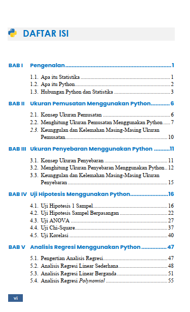Di era Big Data, menguasai teori statistika saja tidak cukup. Anda membutuhkan alat yang cepat dan efisien untuk mengubah data mentah menjadi wawasan yang bermakna. Buku Python untuk Analisis Statistika adalah jembatan praktis Anda, yang dirancang khusus untuk membawa pemahaman statistik Anda langsung ke implementasi kode menggunakan bahasa pemrograman Python.