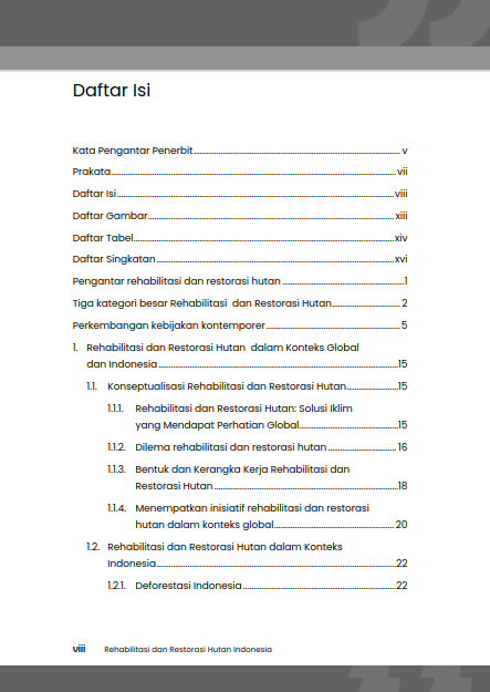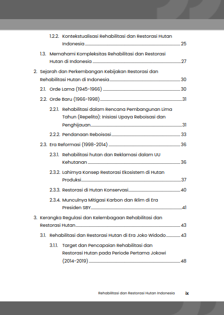 E-Book Rehabilitasi Dan Restorasi Hutan Indonesia: Dilema Lahan, Solusi Iklim, Dan Optimalisasi Kebijakan Kehutanan