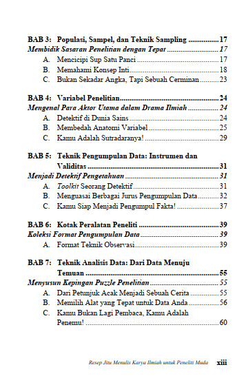 Dalam buku ini, pembaca akan menemukan “resep jitu” berupa langkah-langkah sederhana namun efektif yang dapat diterapkan dalam setiap tahap penulisan. Mulai dari memahami dasar-dasar penulisan akademik, teknik pengumpulan dan pengelolaan data, hingga cara membuat sitasi dan daftar pustaka sesuai kaidah.