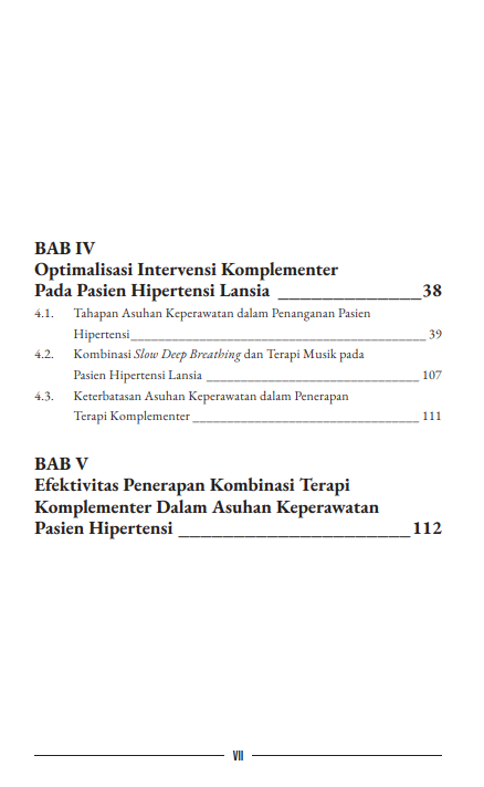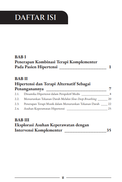 Tak hanya membahas pengobatan medis yang biasa dikenal, buku ini juga mengangkat alternatif penanganan yang bisa dilakukan secara alami dan mandiri. Salah satunya adalah dengan kombinasi terapi komplementer yaitu slow deep breathing dan musik relaksasi. Kedua terapi ini ternyata punya dampak besar dalam menurunkan tekanan darah, memberikan efek tenang, dan menyeimbangkan kerja tubuh secara alami. Penulis menyajikan bagaimana cara kerja terapi ini secara sederhana dan mudah dipahami, tanpa harus memahami istilah medis yang rumit.