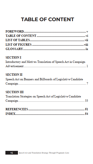 Therefore, through this book, a discussion on speech act translation for students will be presented. Not only that, this book will also elaborate on the importance of the accuracy and precision of speech act translation for students in order to deliver the legislative candidates’ messages well.