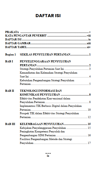 Dengan bahasa yang sistematis dan mudah dipahami, buku ini sangat relevan sebagai referensi bagi mahasiswa pertanian dan komunikasi, penyuluh pertanian, pendamping desa, serta pemangku kepentingan di bidang pembangunan pertanian. Buku ini diharapkan menjadi panduan strategis dalam mewujudkan penyuluhan pertanian yang partisipatif, efektif, dan berkelanjutan.