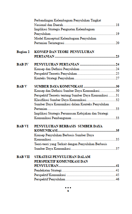 Strategi Penyuluhan Pertanian Berbasis Sumber Daya Komunikasi membahas strategi-strategi dalam kegiatan penyuluhan pertanian dengan menempatkan komunikasi sebagai sumber daya utama dalam proses pemberdayaan petani. Buku ini menguraikan bagaimana perencanaan, pemilihan, dan pemanfaatan sumber daya komunikasi—baik manusia, media, pesan, maupun teknologi—dapat meningkatkan efektivitas penyampaian inovasi dan pengetahuan pertanian.