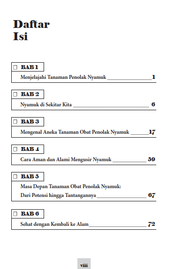Buku Referensi Tanaman Obat Penolak (Repellent) Nyamuk ini hadir sebagai sebuah sumber informasi yang komprehensif tentang spesies-spesies tanaman obat penolak nyamuk, termasuk karakteristiknya, cara kerja, dan pemanfaatan dalam kehidupan sehari-hari. Di dalamnya, diulas tentang mekanisme bagaimana tanaman tertentu dapat mengusir nyamuk serta manfaat tambahan yang dapat diperoleh dari penggunaannya, yang tidak hanya terbatas pada penghindaran dari gigitan nyamuk, tetapi juga berpotensi untuk meningkatkan kebersihan lingkungan dan kesehatan secara umum. Penjelasan mengenai proses pengolahan tanaman menjadi produk yang siap digunakan serta cara aplikasinya dalam kehidupan sehari-hari menjadi fokus dari setiap bab. Penyusunan informasi ini dilakukan dengan pendekatan yang sistematis, sehingga setiap pembaca, baik yang awam maupun yang sudah berpengalaman, dapat dengan mudah memahami dan menerapkan pengetahuan yang diperoleh.