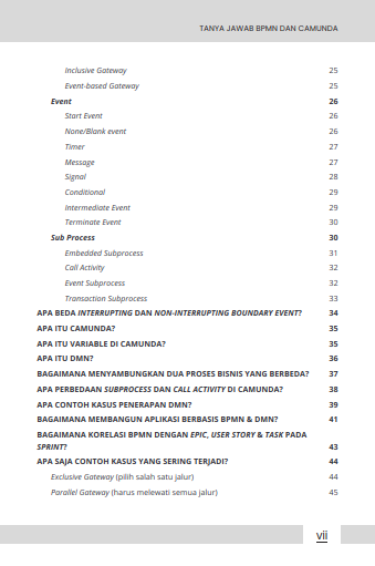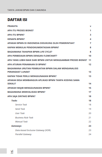 Buku Tanya Jawab BPMN dan Camunda ini ditulis untuk mendokumentasikan pertanyaan-pertanyaan yang sering muncul dalam pembuatan BPMN dan aplikasi berbasis Camunda. Diharapkan dengan adanya buku ini, bisa lebih mudah dalam mempelajari BPMN dan Camunda. Selamat membaca!