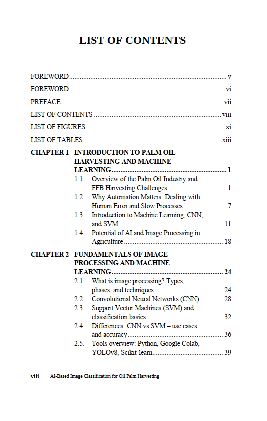 Table contens Book of AI-Based Image Classification for Oil Palm Harvesting: