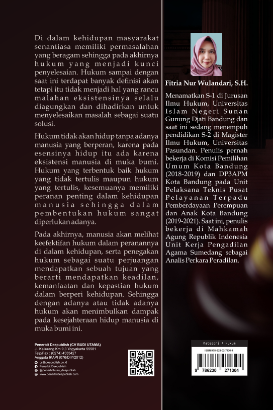Buku “6 Telaah Hukum” dalam Perspektif Filsafat Hukum ini diterbitkan oleh Penerbit Buku Pendidikan Deepublish.