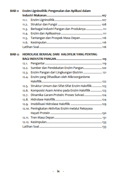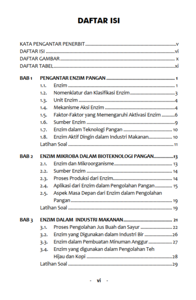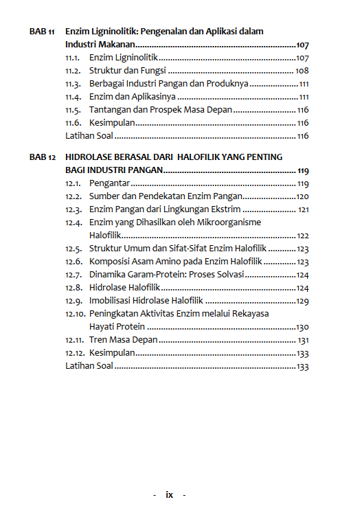 Berikut Daftar Isi Buku Kimia berjudul Buku Ajar Enzim Pangan, diantaranya: