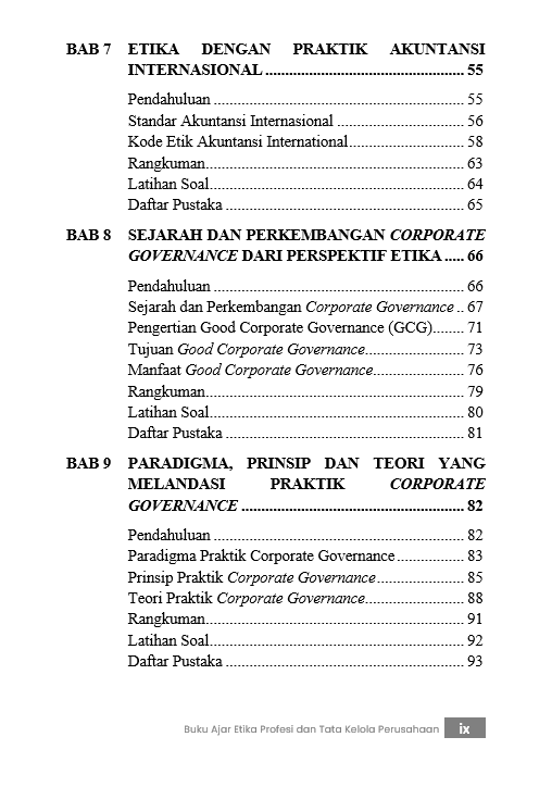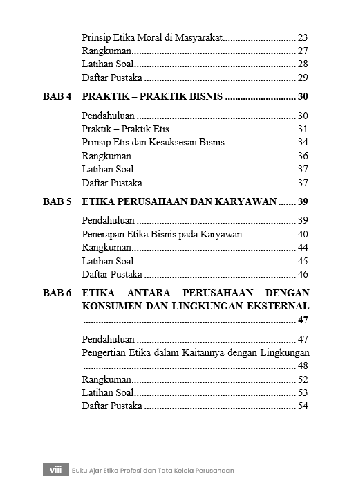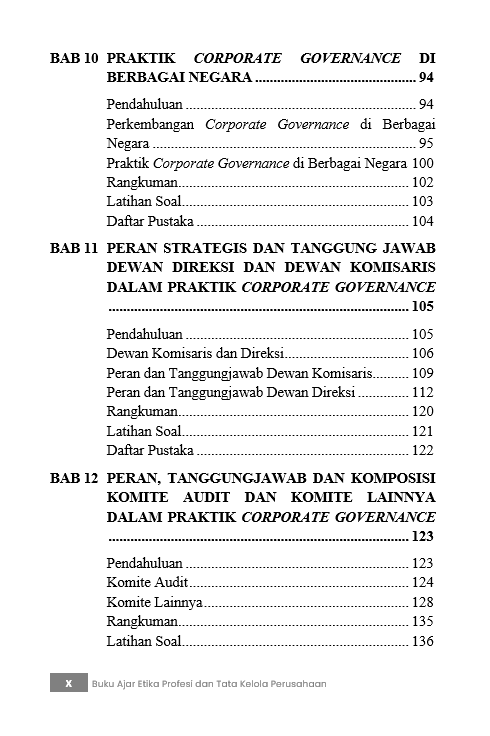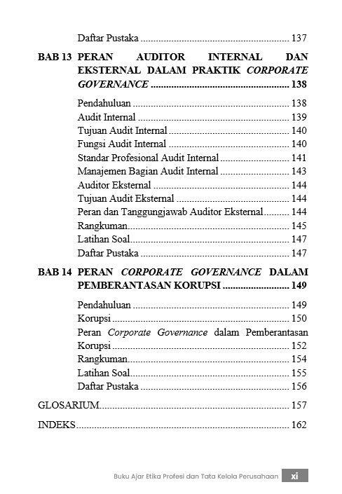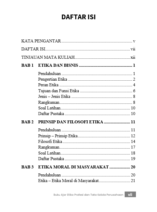Berikut Daftar Isi Buku Bisnis yang berjudul Buku Ajar Etika Profesi dan Tata Kelola Perusahaan, diantaranya:
