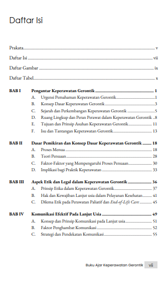 Berikut Daftar Isi Buku Keperawatan yang berjudul Buku Ajar Keperawatan Gerontik, diantaranya:
