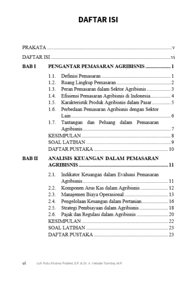 Berikut Daftar Isi Buku Pertanian yang berjudul Buku Ajar Pemasaran Produk Agribisnis, diantaranya: