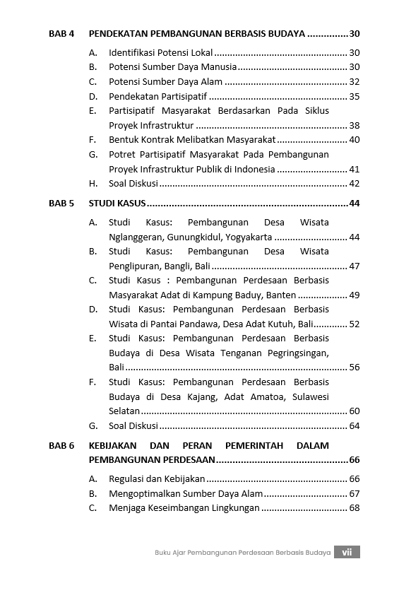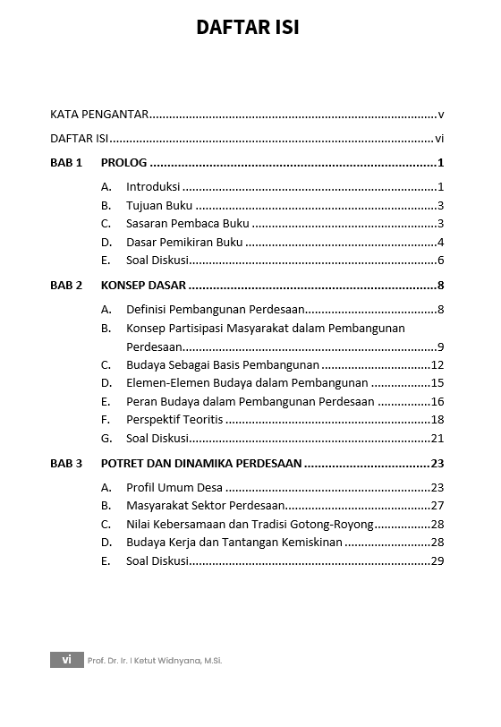 Berikut Daftar Isi Buku Administrasi Negara berjudul Buku Ajar Pembangunan Perdesaan Berbasis Budaya, diantaranya: