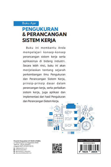 Buku Ajar Pengukuran & Perancangan Sistem Kerja ini diterbitkan oleh Penerbit Buku Pendidikan Deepublish.