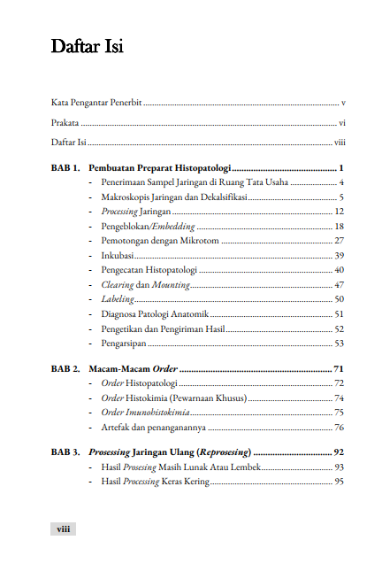 Cocok untuk mahasiswa, tenaga laboratorium pemula, maupun praktisi yang ingin menyegarkan kembali pemahaman dasar, buku ini menjadi teman belajar sekaligus teman kerja. Melalui buku ini, proses pembuatan preparat tidak lagi terasa rumit, melainkan menjadi keterampilan yang dapat dikuasai dengan percaya diri.