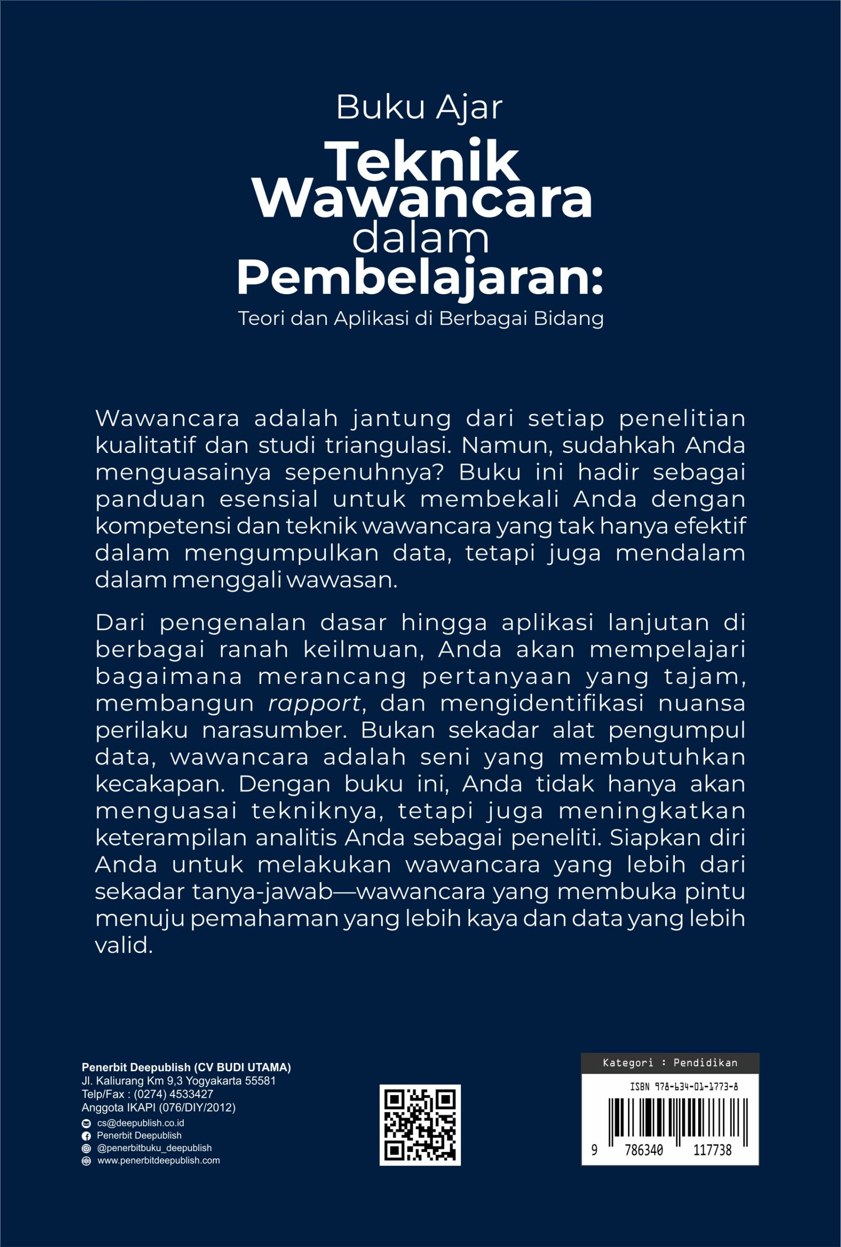 Buku Ajar Teknik Wawancara dalam Pembelajaran: Teori dan Aplikasi di Berbagai Bidang diterbitkan oleh Penerbit Buku Pendidikan Deepublish.