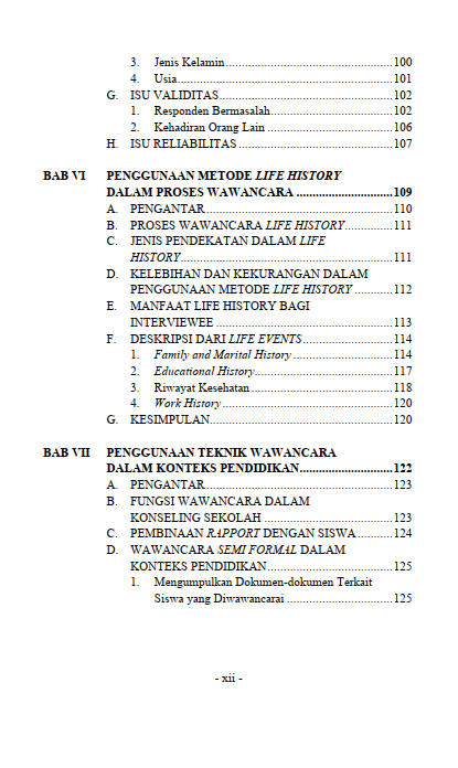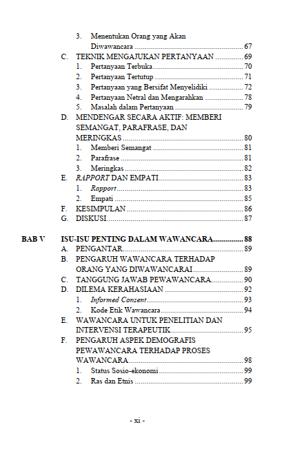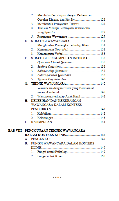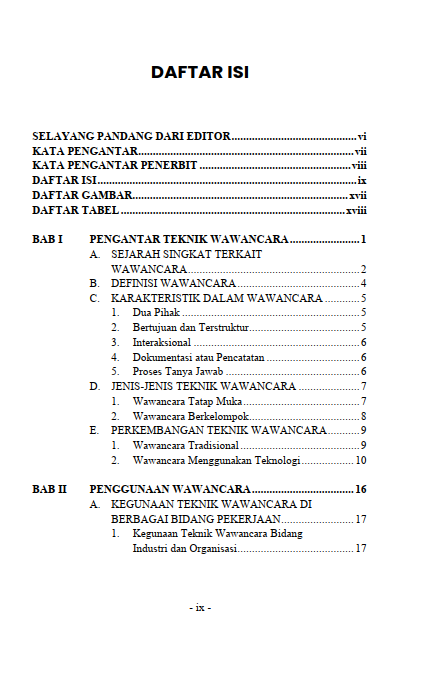 Berikut Daftar Isi Buku Psikologi yang berjudul Buku Ajar Teknik Wawancara dalam Pembelajaran: Teori dan Aplikasi di Berbagai Bidang, diantaranya: