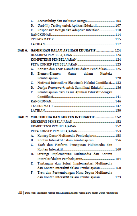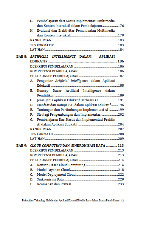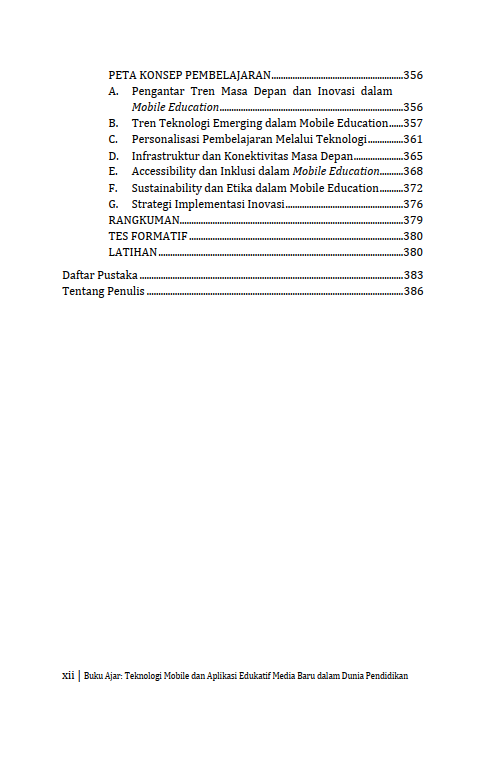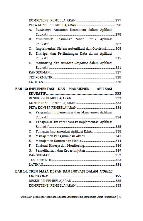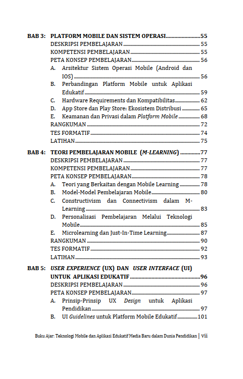 Berikut Daftar Isi Buku Pendidikan yang berjudul Buku Ajar: Teknologi Mobile dan Aplikasi Edukatif Media Baru dalam Dunia Pendidikan, diantaranya: