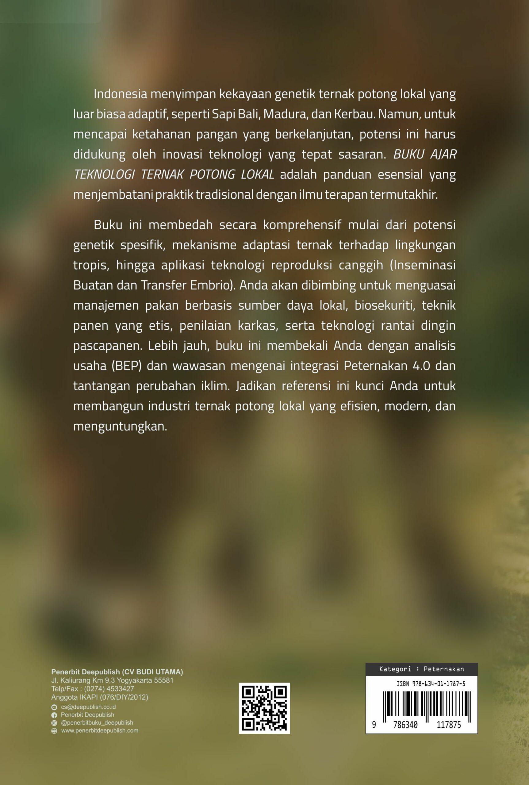 Buku Ajar Teknologi Ternak Potong Lokal diterbitkan oleh Penerbit Buku Pendidikan Deepublish.