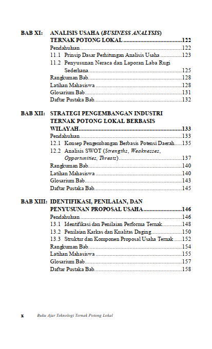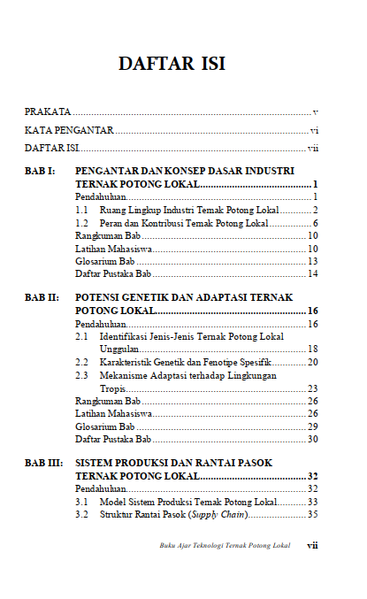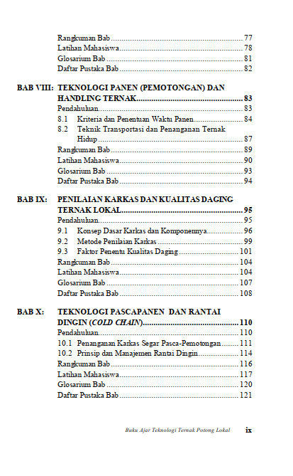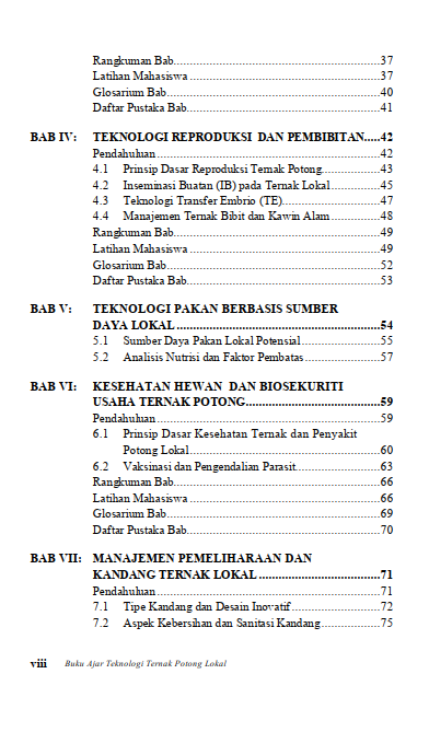 Berikut Daftar Isi Buku Peternakan yang berjudul Buku Ajar Teknologi Ternak Potong Lokal, diantaranya: